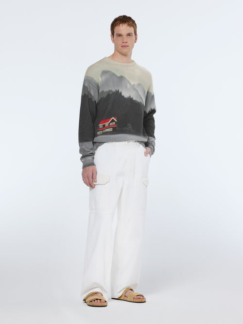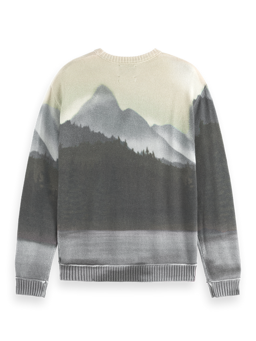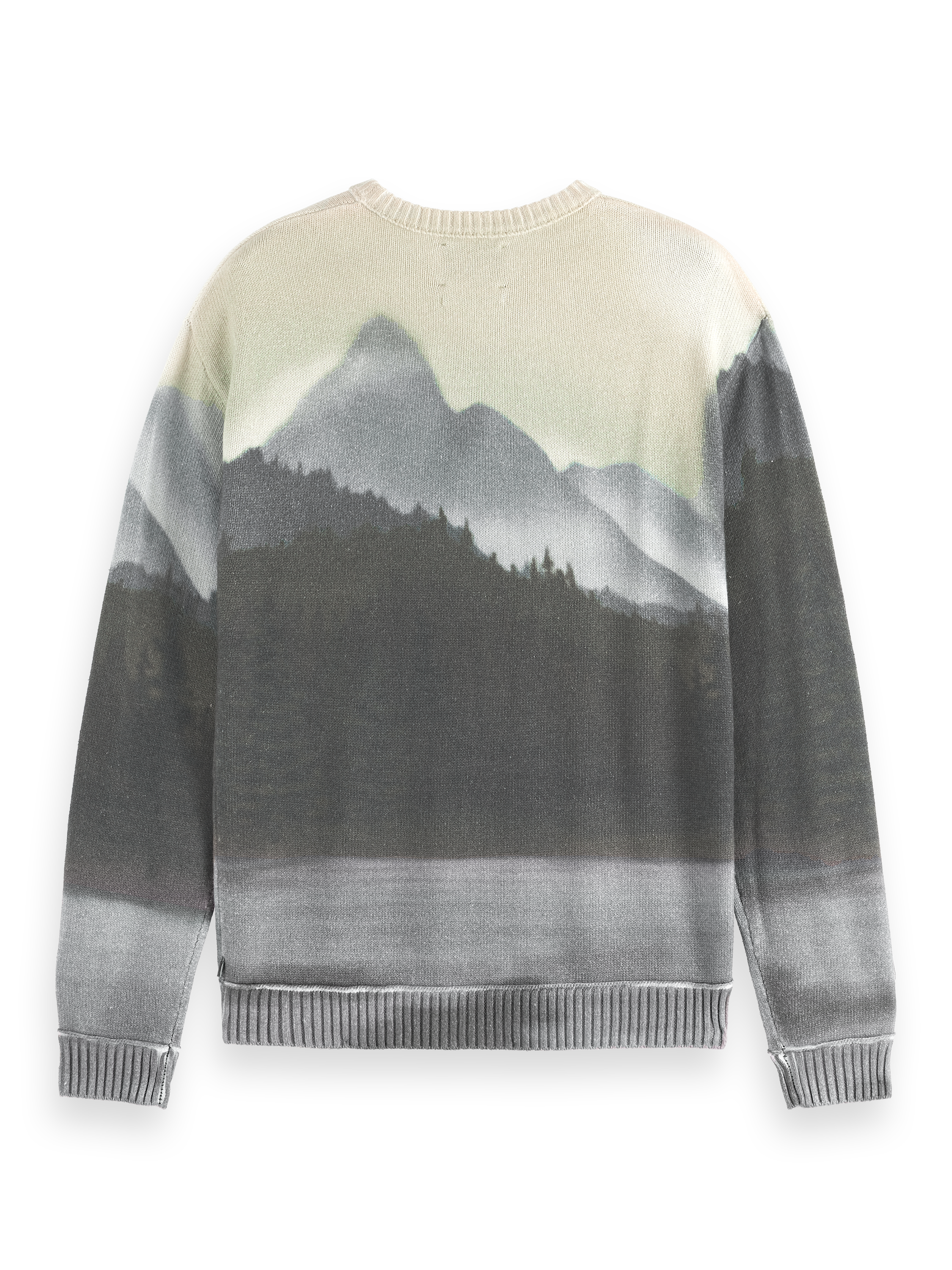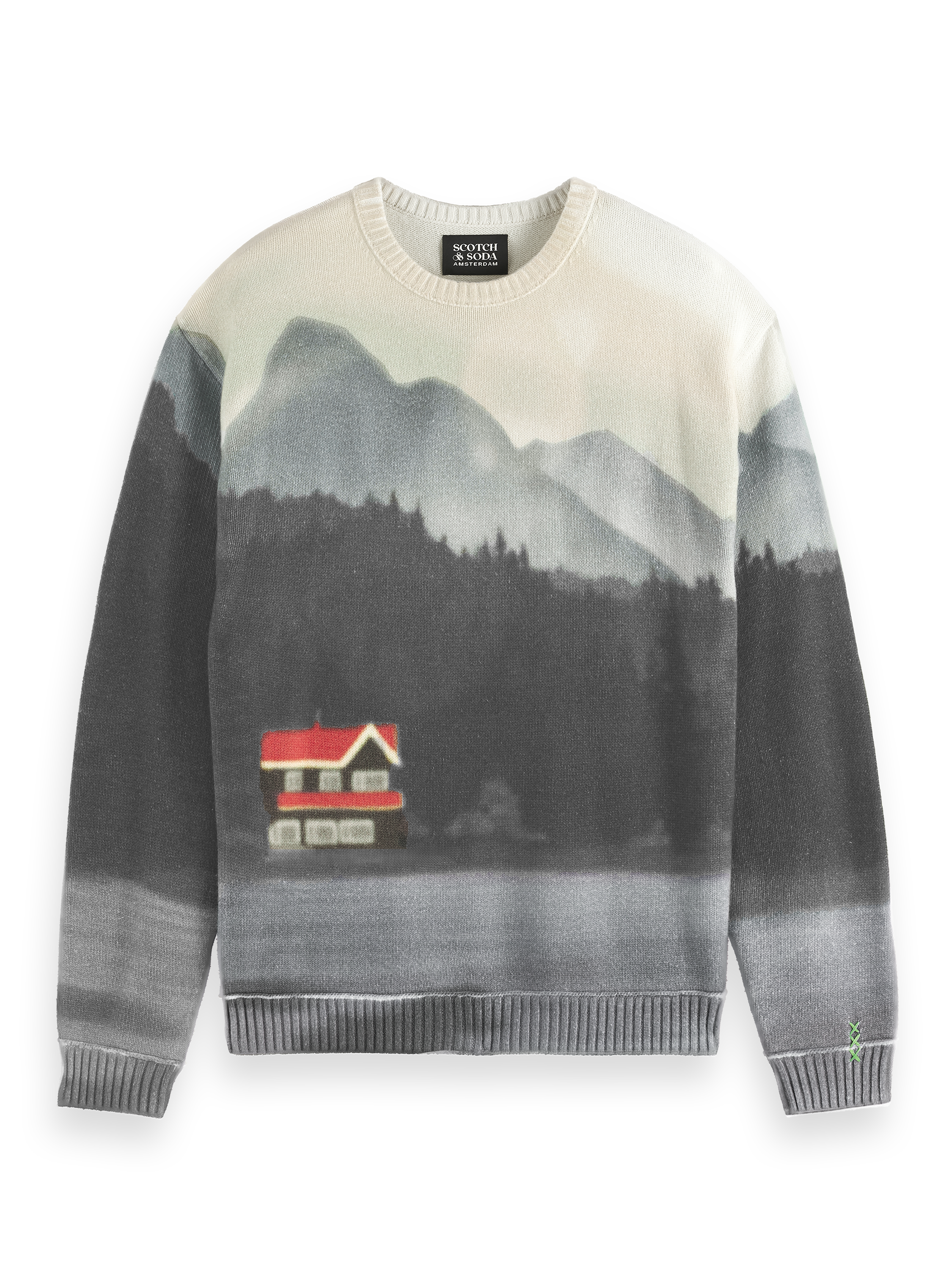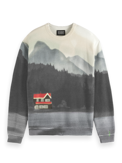 This unique crewneck takes casual comfort to a new level with its all-over lakehouse print. The scoop neck and drop-shoulder design add a relaxed, modern edge to this standout piece.