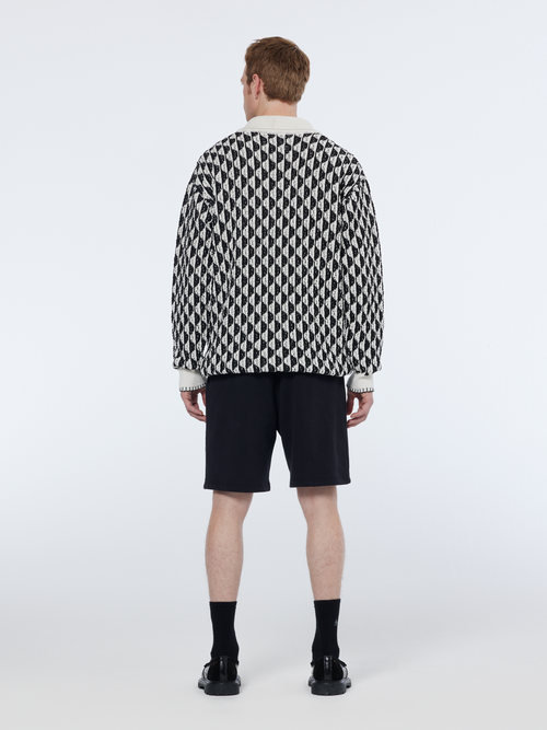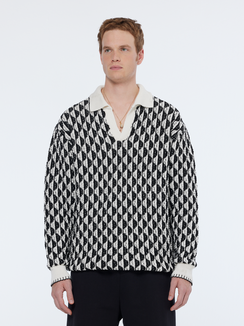 Jacquard Drop Shoulder Long Sleeve Polo