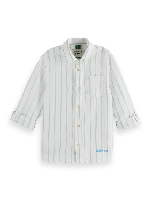A blend of sophistication and cool, this yarn-dyed linen shirt with Scotch & Soda embroidery adds a touch of laidback luxury to your day.