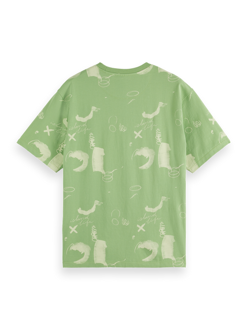 Stand out casually with this all-over print T-shirt, ideal for adding a touch of intrigue to your everyday relaxed wear.