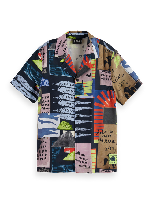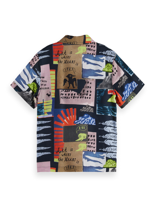 Make a statement in this collage-inspired, short-sleeved shirt in a regular-fit.