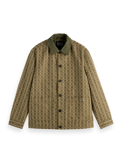 This jacket is a classic yet unique addition, featuring a button-up design, a collared neckline, and front pockets. Its jacquard cotton-blend material sets it apart, making it an essential piece for any wardrobe.