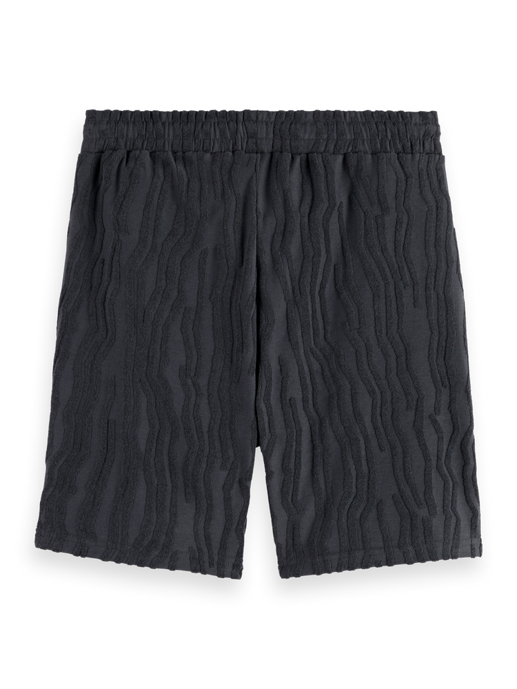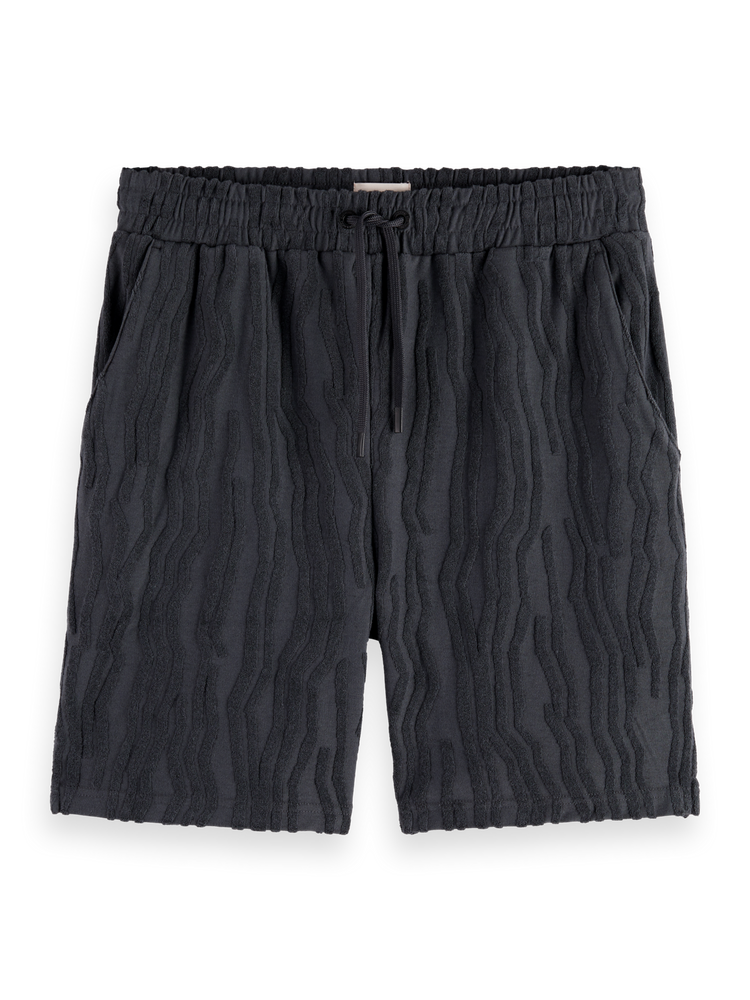 Step into summer comfort with the Cotton Terry Jacquard Shorts, ideal for lounging or casual outings, featuring a stylish jacquard pattern.