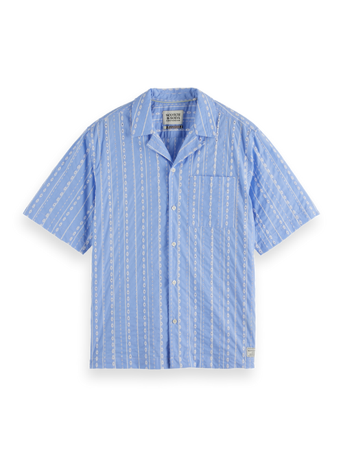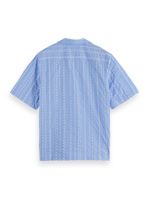 Our Embroidered-Stripe Short-Sleeved Relaxed-Fit Shirt is perfectly understated for weekend gatherings.