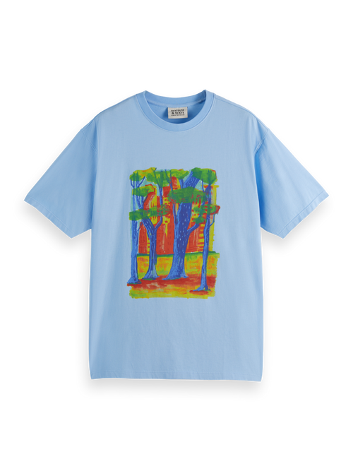 Featuring a unique and colorful park artwork print, this classic t-shirt offers both comfort and style. Its relaxed fit ensures an easy wear, perfect for adding a vibrant touch to your casual outfits.