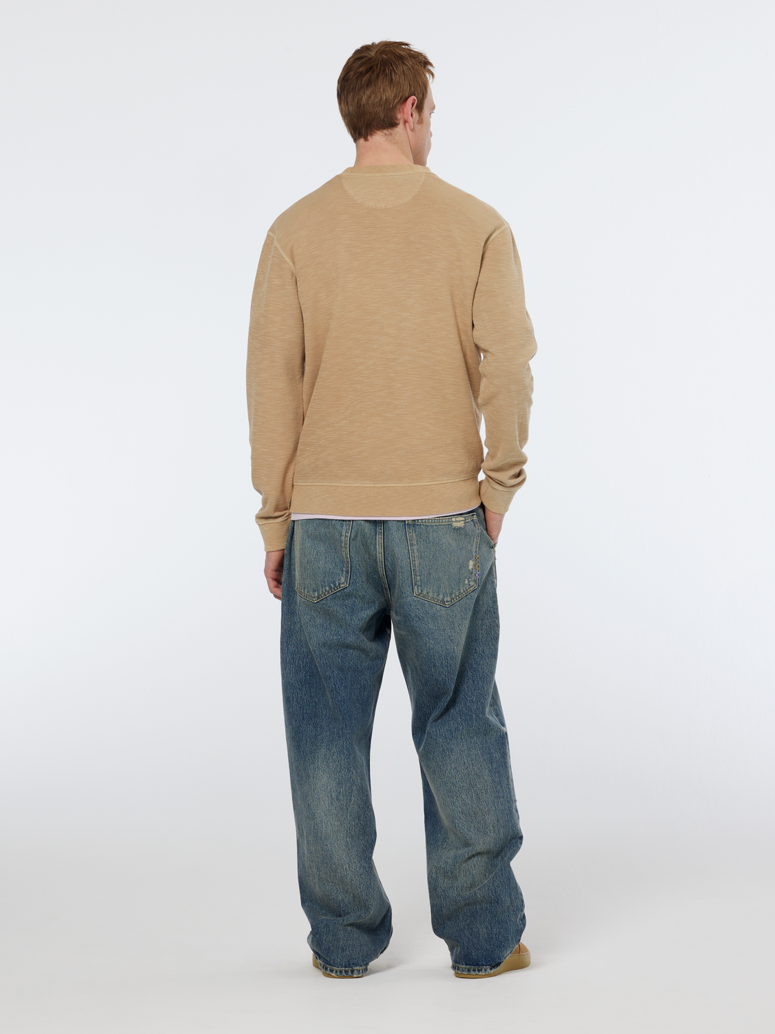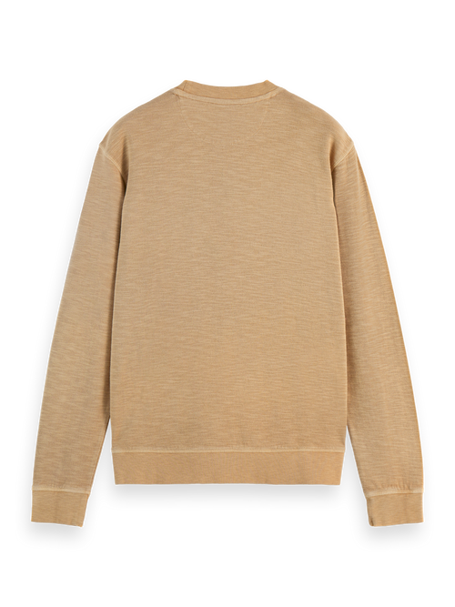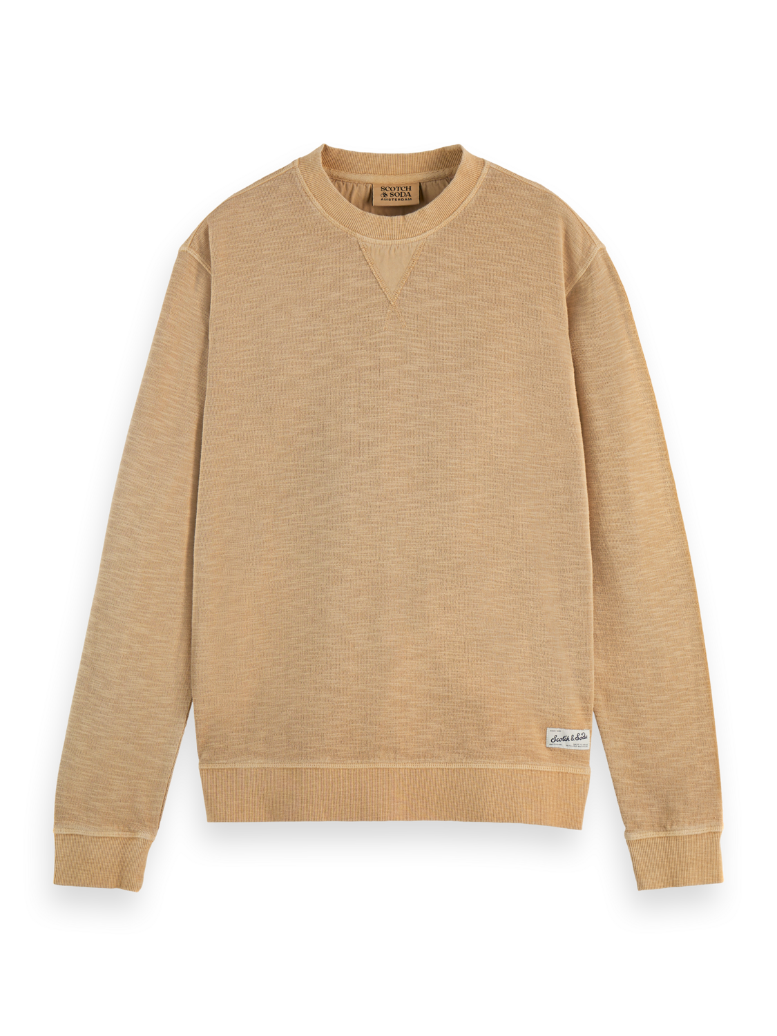 Indulge in the exquisite feel of our garment-dyed sweatshirt. Its structured design lends a polished look that pairs seamlessly with denim or trousers for a sophisticated yet casual ensemble.