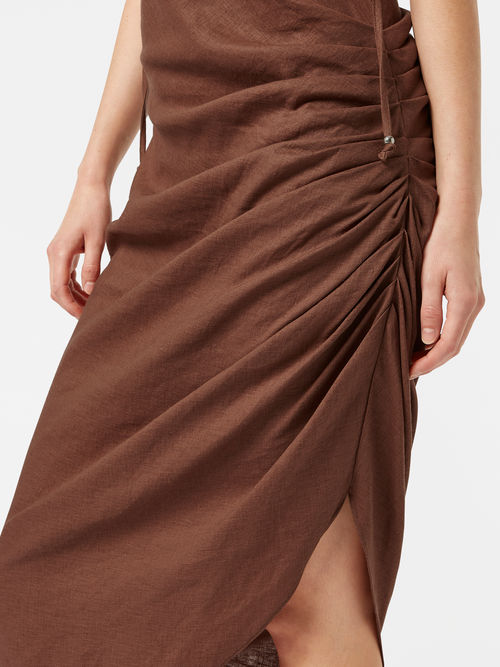 Flow into elegance with this Linen Viscose Midi Dress, featuring a soft print and a fluid silhouette for all-day comfort.