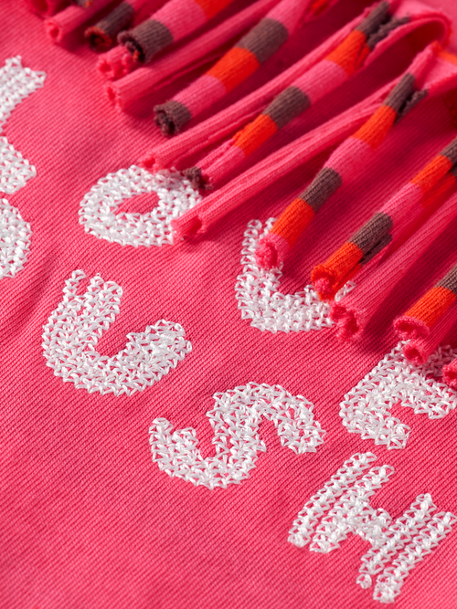 Stand out with the playful detail of this Fringed Heart T-shirt, offering oversized ease for a stylish, carefree look.