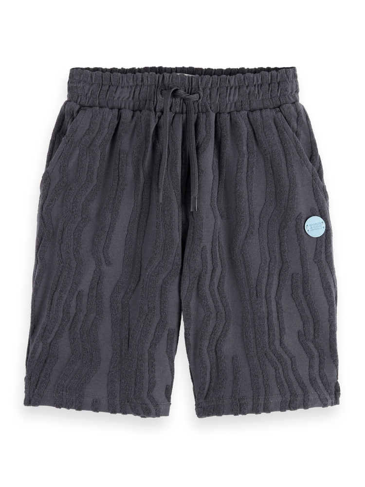 Perfect for leisurely days, the Mid-Length Toweling Jacquard Shorts deliver comfort with a fun textural twist.