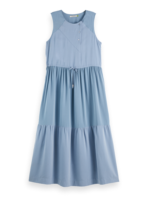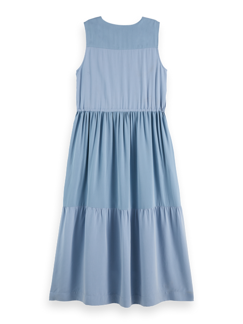 Featuring a classic singlet shape, with a gathered waist and tiered skirt, this midi-dress is the perfect summer go-to.