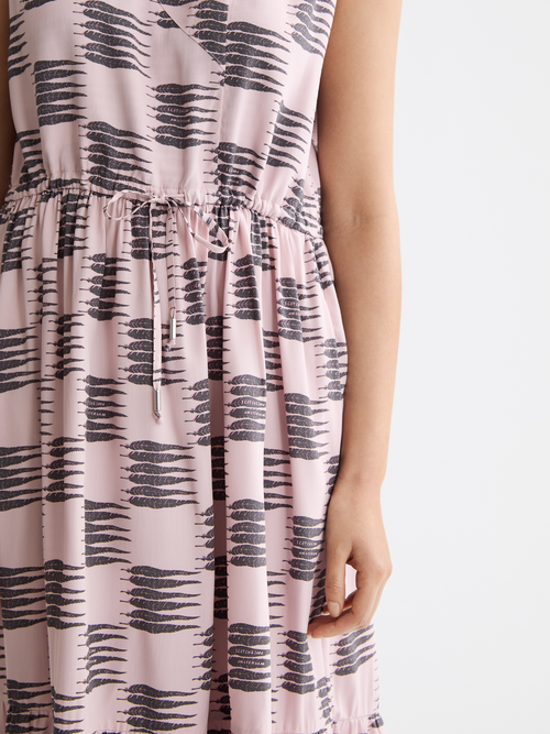 Featuring a classic singlet shape, with a gathered waist and tiered skirt, this midi-dress is the perfect summer go-to.