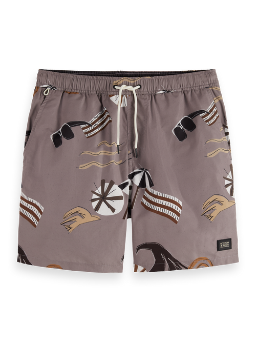 Make a splash in the Printed Mid-Length Swim Shorts, designed for both water-bound adventures and beachside lounging.