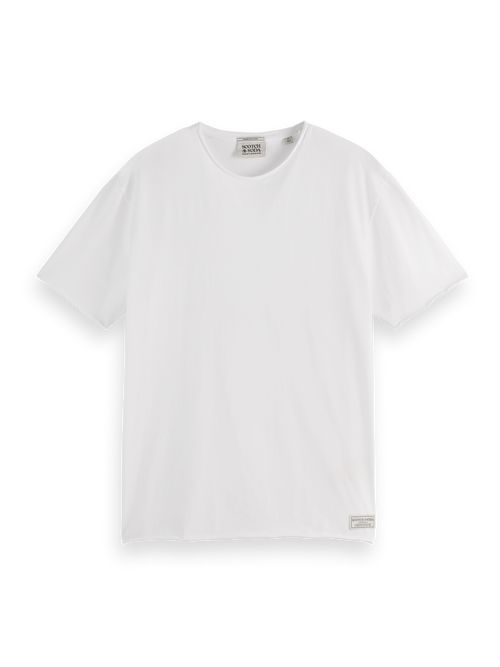 This t-shirt features a relaxed fit with raw edge details for an effortlessly cool vibe. Its simple design makes it a versatile piece for any casual look.