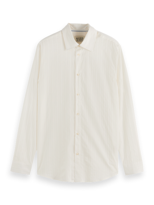 This shirt showcases a sophisticated dobby texture, complete with a collared, button-up front and long sleeves. Its regular fit ensures a comfortable wear, making it a smart choice for both office and leisure.