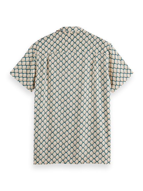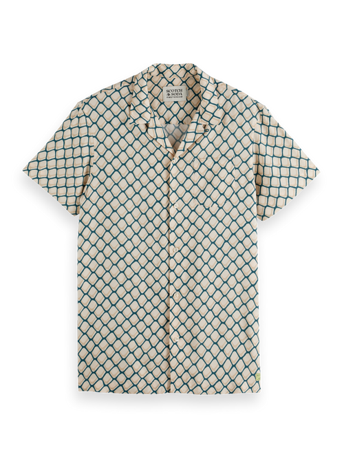 Serve up style in this tennis print shirt. With a button-up design and unique all-over print, it’s a sporty staple that pairs perfectly with the matching Bermuda shorts for a coordinated outfit.