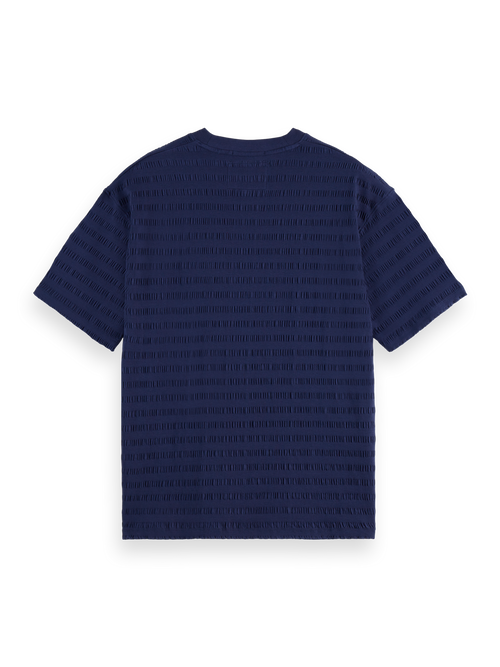 A textured t-shirt with horizontal detailing, designed in a relaxed fit for a laid-back, comfortable style.