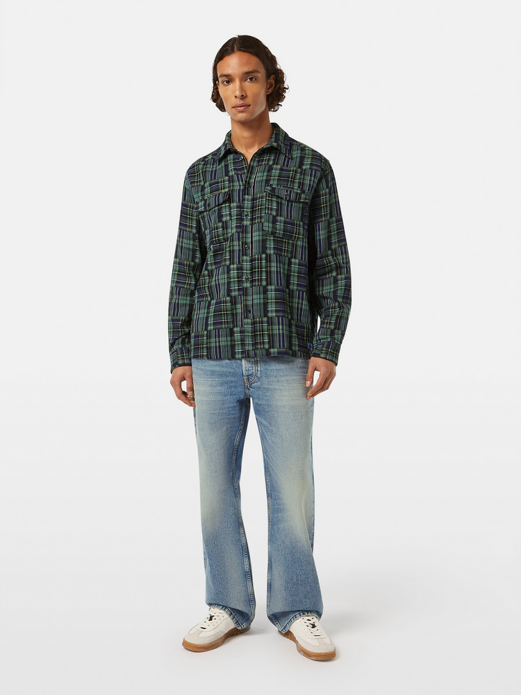 Make a statement with this unique patchwork print shirt. Its relaxed fit, collared design, and long sleeves make it a conversation starter that doesn't compromise on comfort or style.