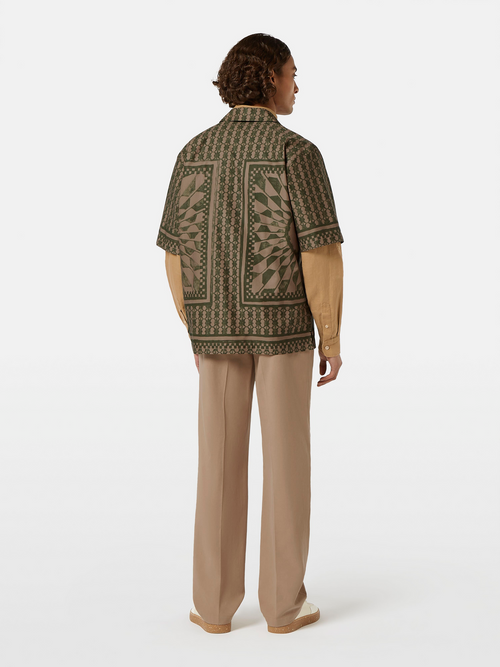 Make a statement with this unique floral print shirt, featuring a button-up design and a collared neckline. Its short sleeves and relaxed fit ensure comfort and style in equal measure.