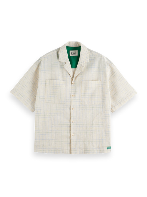 This shirt features a bold, yarn-dyed check pattern for lasting color and definition. With its relaxed fit, short sleeves, button-up front, and front pockets, it strikes a balance between casual comfort and sartorial flair, perfect for weekend outings.