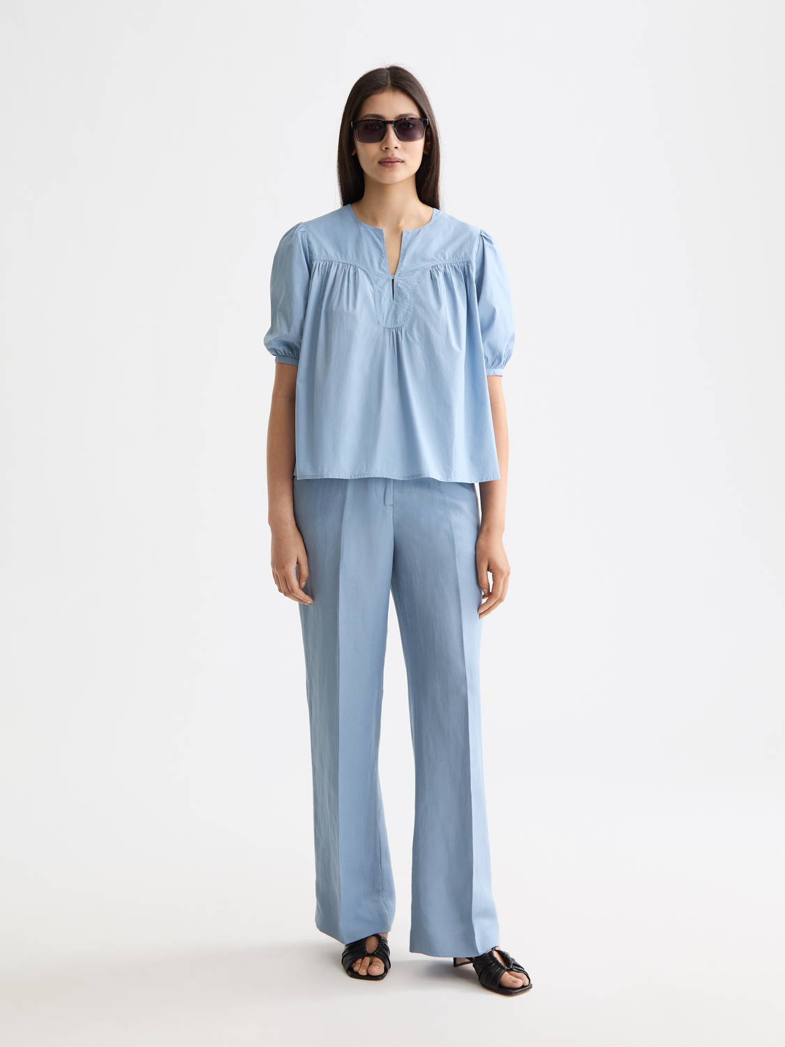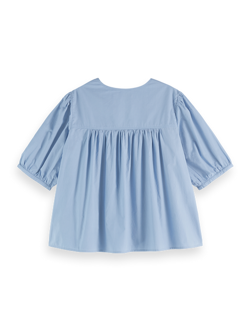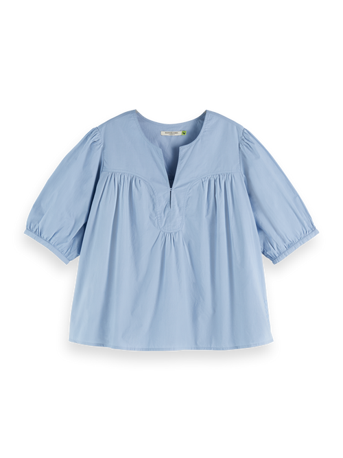 A relaxed shirt for everyday wear, this top features 3/4 length sleeves, a small V-neck and A-line shape.