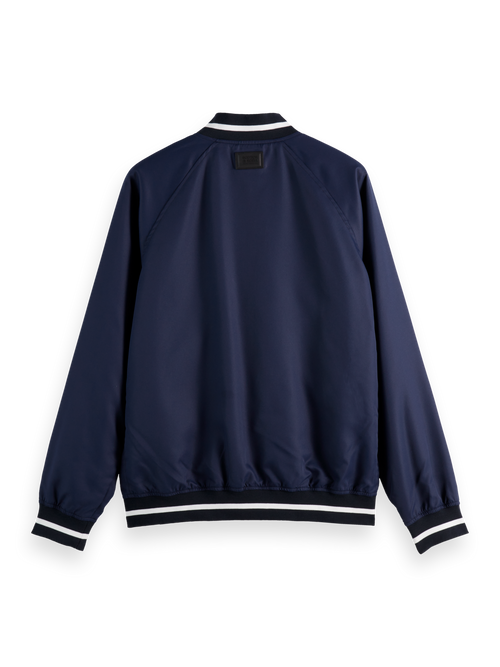 Double your style options with this versatile reversible bomber jacket. Featuring a classic high neckline, stripe detailing on the cuffs and collar, and the ability to switch up your look, it's a season must-have.