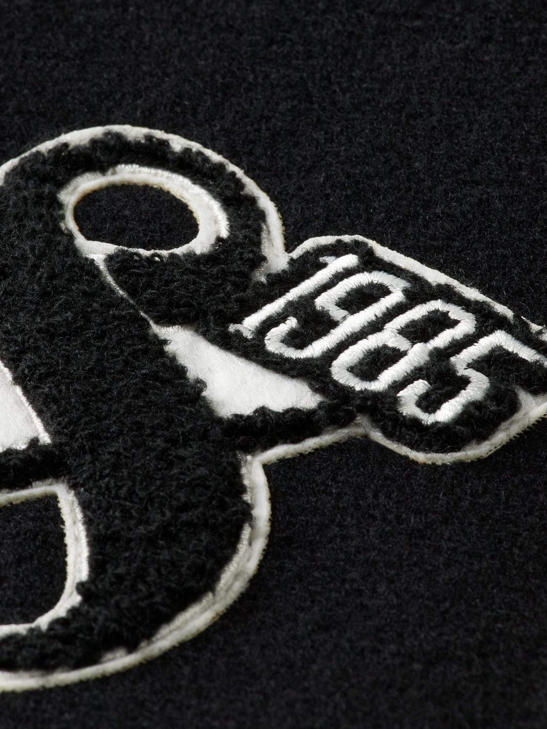 Channel the spirit of the classics with the Ampersand varsity jacket. Long sleeves, pockets, and striped detailing on cuffs and bottom bring together timeless appeal and laidback luxury.