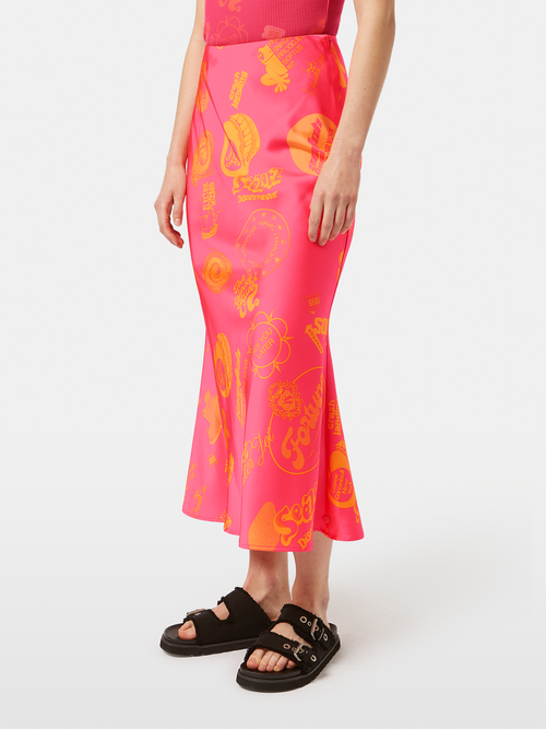 Glide into any room with elegance in this Satin Midi Skirt, destined to become a versatile piece in your wardrobe for seasons to come.