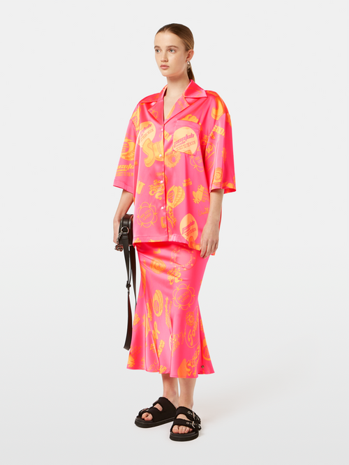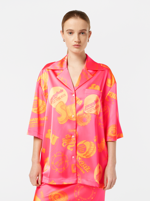 Add a touch of sophistication to your wardrobe with this Satin Printed Shirt, blending elegance with easy wearability.