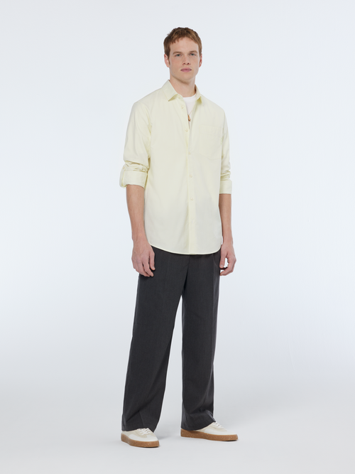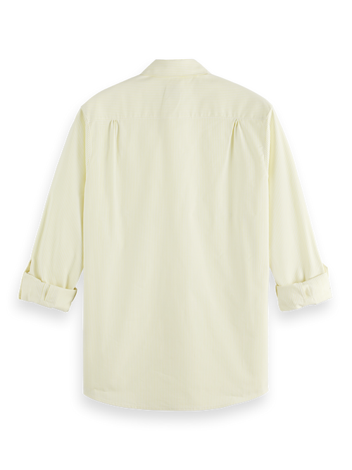 With a button-up front and folded cuffs, this collared, long-sleeved shirt offers a traditional aesthetic with regular stripes. Crafted for versatility, it functions well in both casual and formal settings.