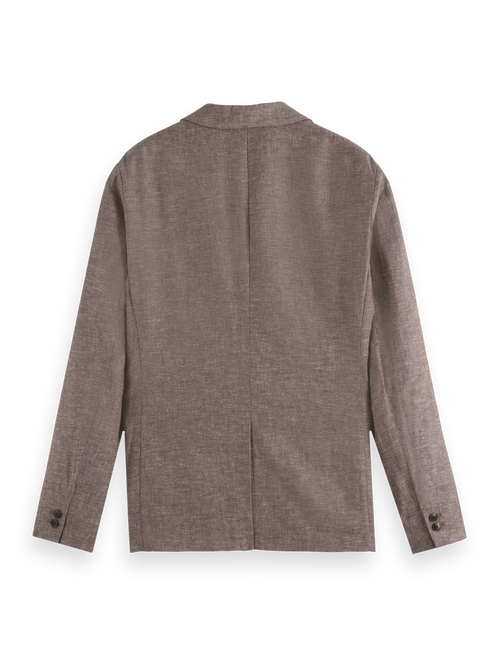 The Single-Breasted Cotton-Linen Blazer is a lightweight, breathable option that sharpens any outfit.