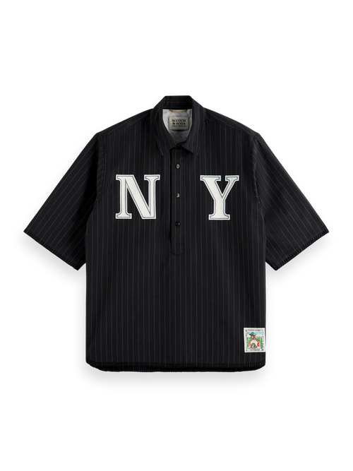 Hit a style home run with this NY collared baseball shirt. Its short sleeves and tailored fit make it a standout piece for those looking to blend sporty vibes with sharp tailoring.