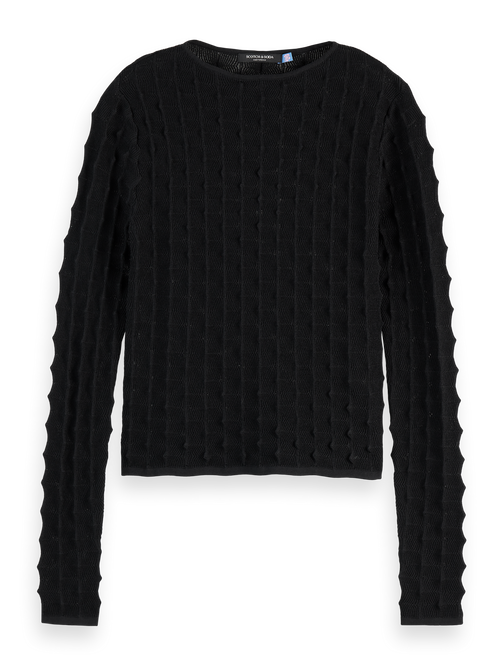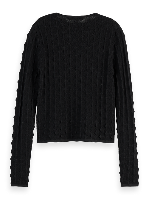 This jewel neck pullover combines texture with a stretchy fit for a look that's as comfortable as it is classic. The long sleeves enhance its sophisticated aesthetic, perfect for any occasion.