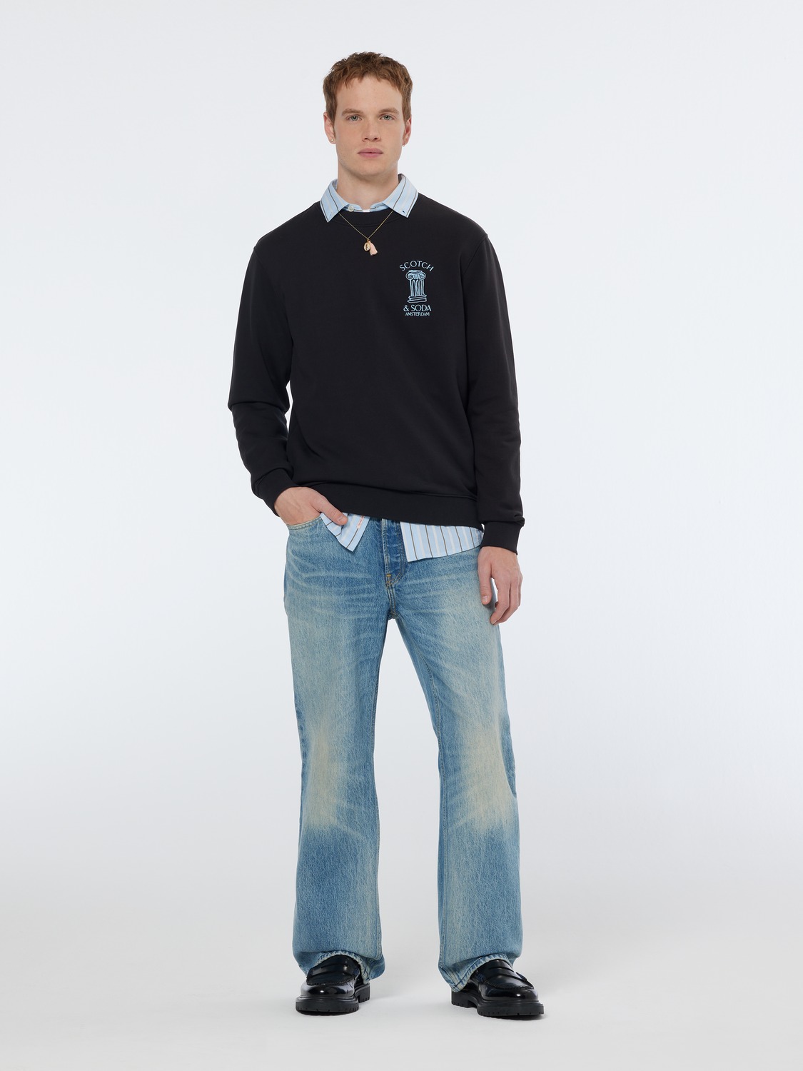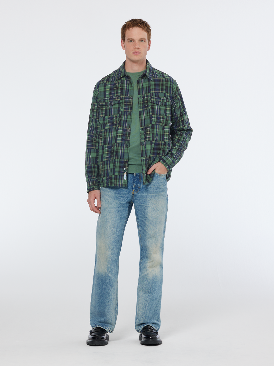 These stone-washed, vintage denim pants bring a classically rugged look to any outfit. The bootcut design is a nod to timeless style, making these jeans a versatile addition to your wardrobe that pairs well with both casual and more refined tops.