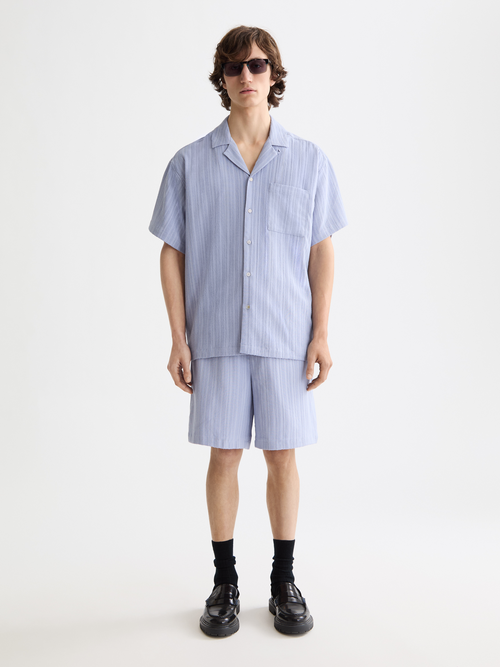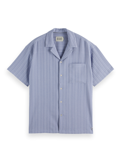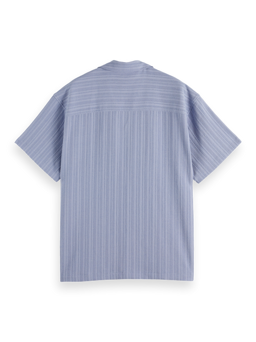 A short-sleeved shirt featuring subtle tonal stripe detailing, perfect for a sophisticated, laid-back style.