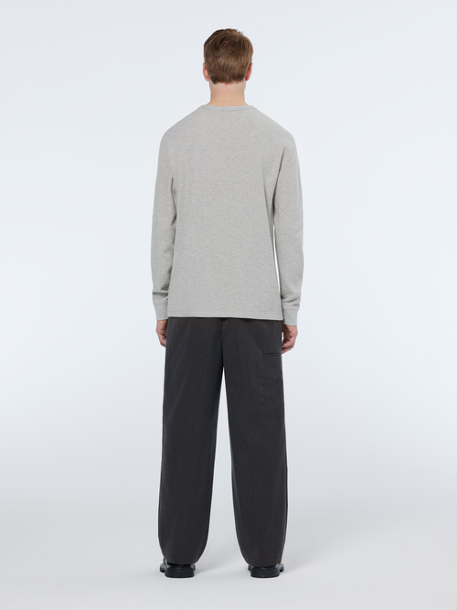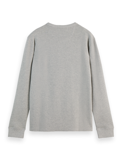 This t-shirt is designed for warmth and comfort, featuring a scoop neck, rib knit cuffs, and a waffle texture. It's the perfect layering piece for chilly days.