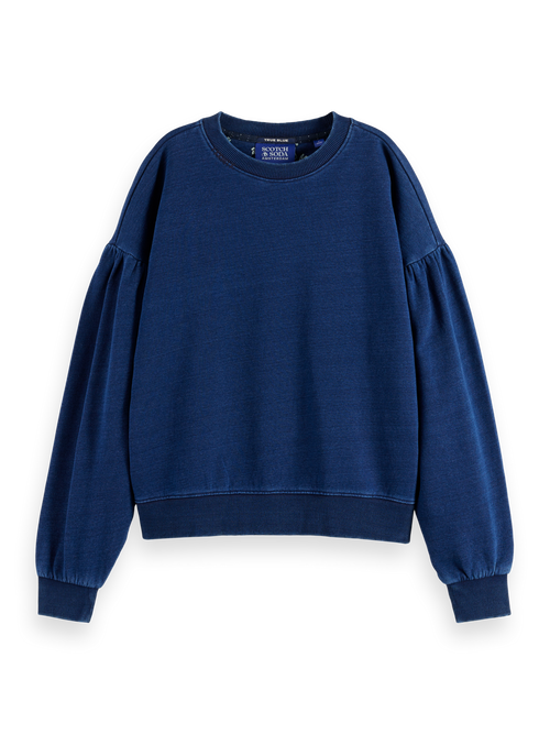 Washed Indigo Crew Neck Sweatshirt With Balloon Sleeves
